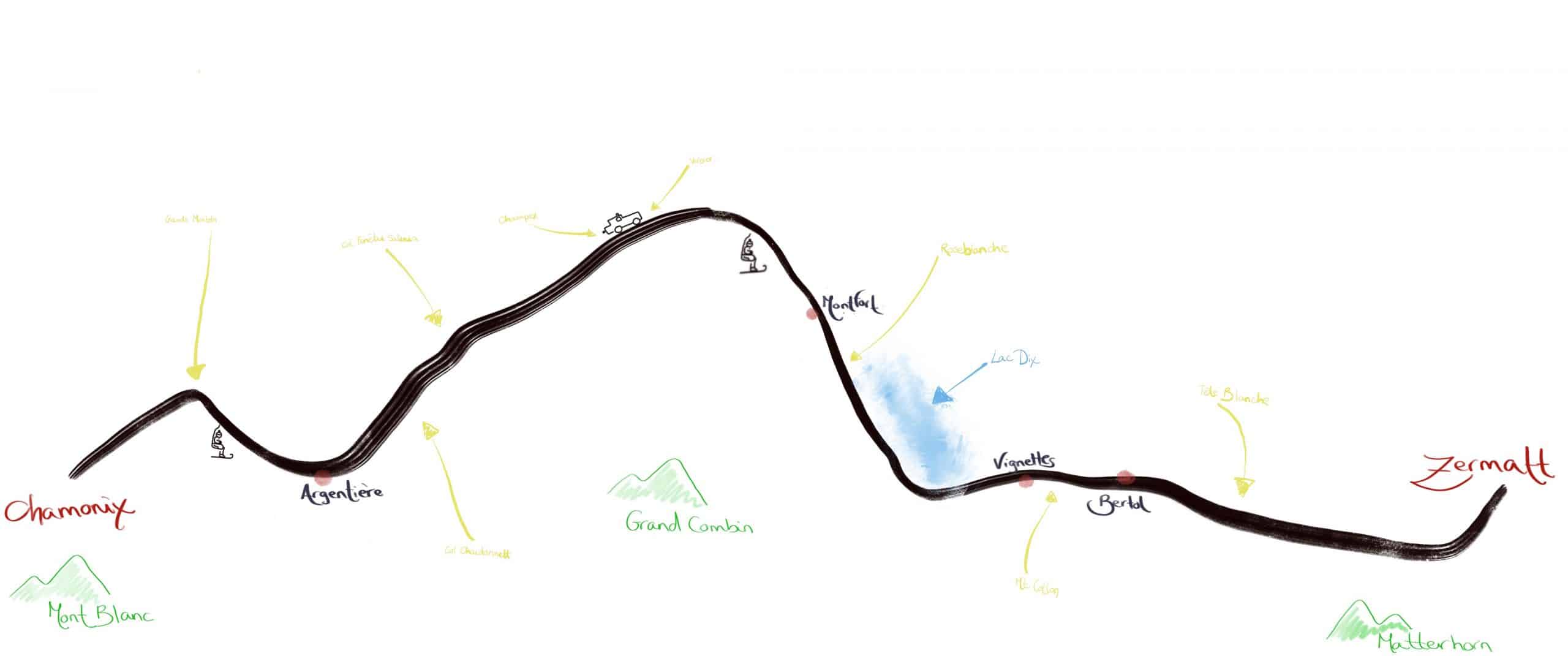 La ruta a parte de necesitar una buena logística (reserva de refugios, algunos forfaits o transporte en taxi según la cantidad de nieve para llegar a Verbier) cuenta con algunas dificultades técnicas, por lo que es altamente recomendable el alquiler de un guía de alta montaña. Bastien Fleury y Olivier Meynet en el 2016 marcaron el tiempo más rápido parando el crono en 16h y 50 minutos. Para la gran mayoría de la gente no obstante la ruta dura entre cinco y seis días. Mirando por internet y en las guías vemos que hay una gran variedad de recorridos y de logísticas. Yo os cuento el recorrido que hicimos nosotros.