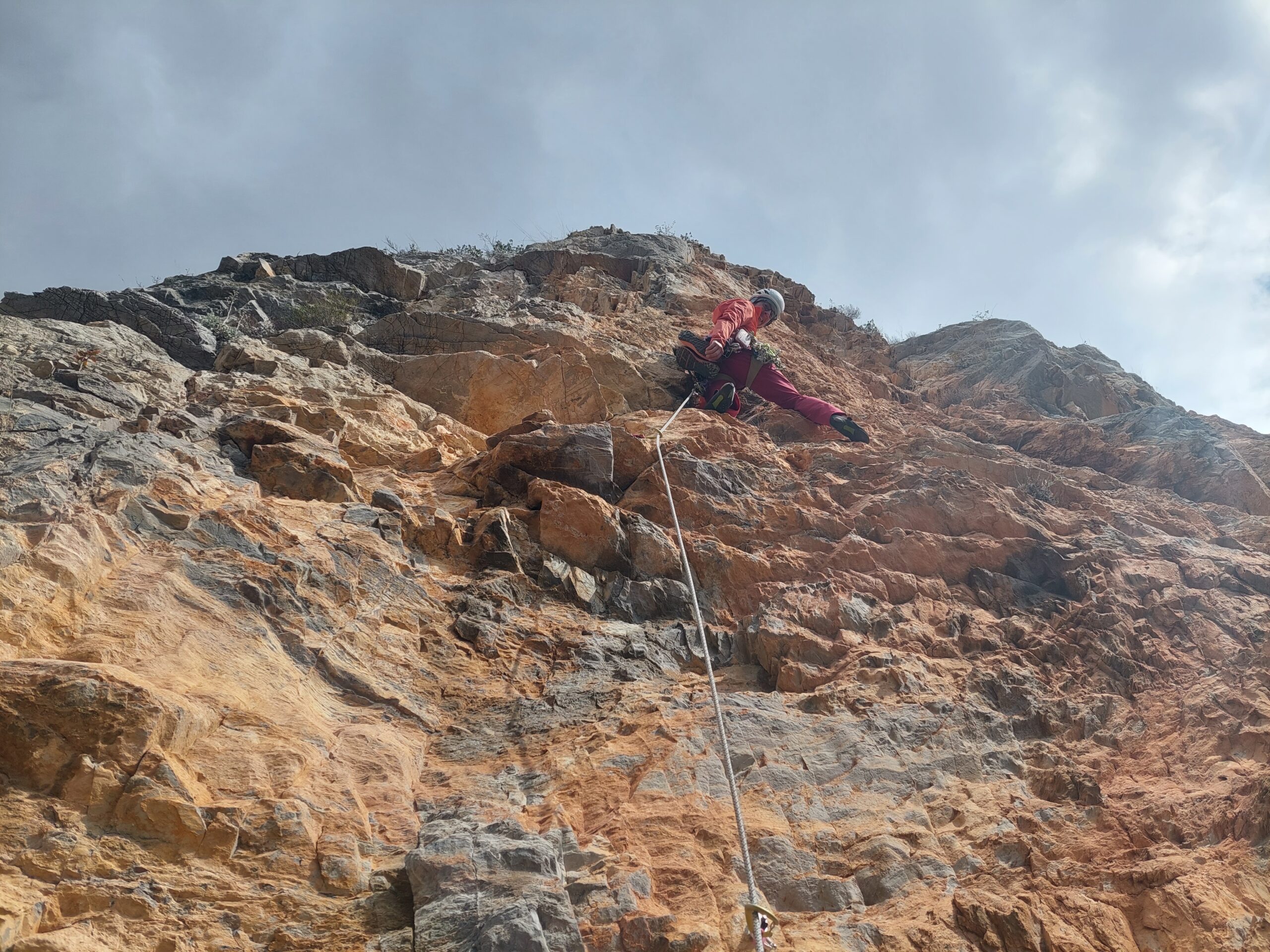 Sobre la ruta; Se trata de una muy buena vía en su estilo, equipada. Que recorre un trazado variado entre desplomes físicos y placas técnicas. Los dos primero largos transcurren por un desplomado, estético y aéreo muro amarillento del que salen unos largos de resistencia/pila preciosos. El tercer largo resigue un espolón que no es complicada pero tiene un ambiente increíble. Seguidamente la escalada se transforma y finaliza en unas bellas y compactas placas con presa generosa. Nos parece una vía muy recomendable, roca de gran calidad y buen equipamiento.