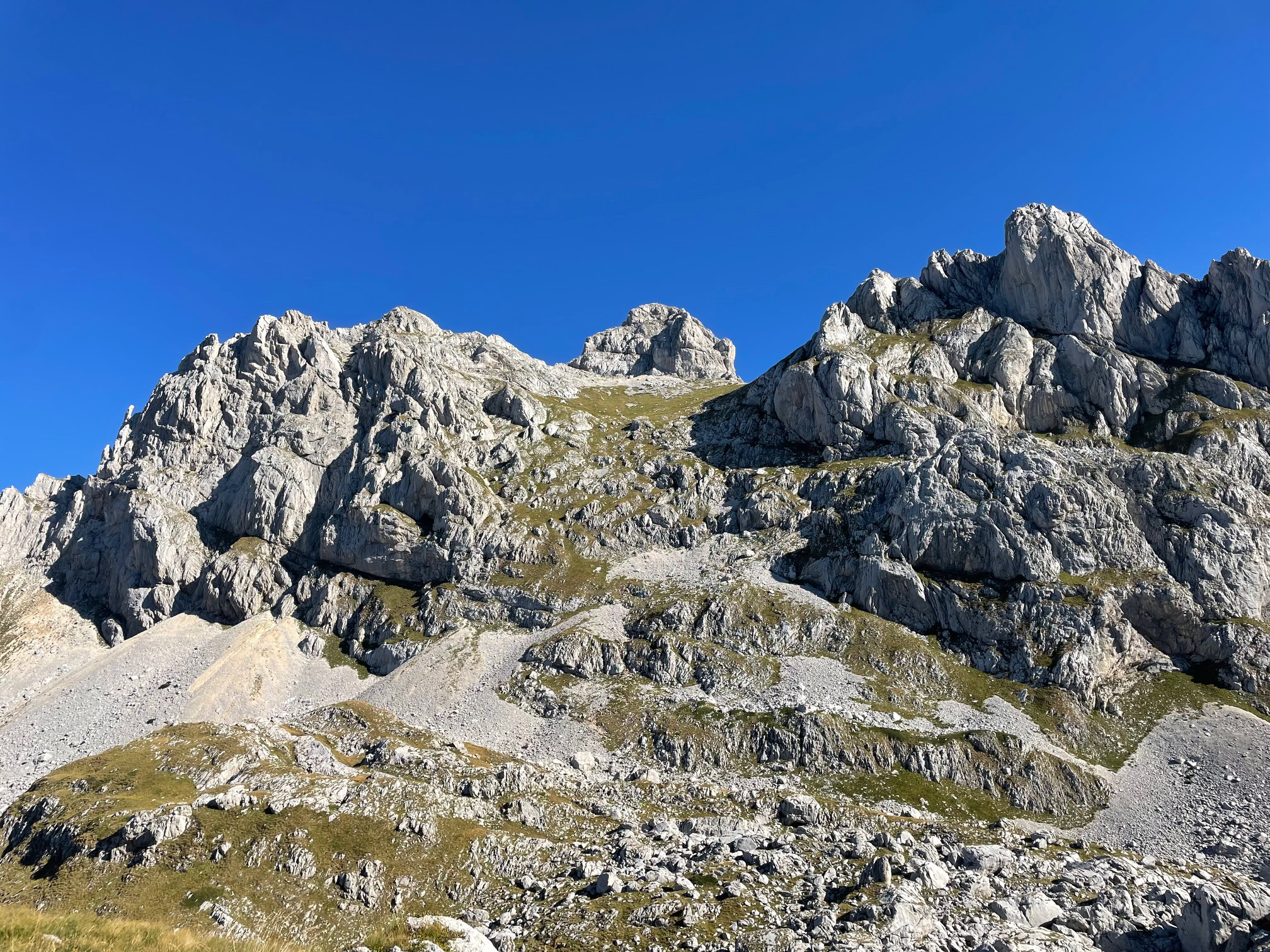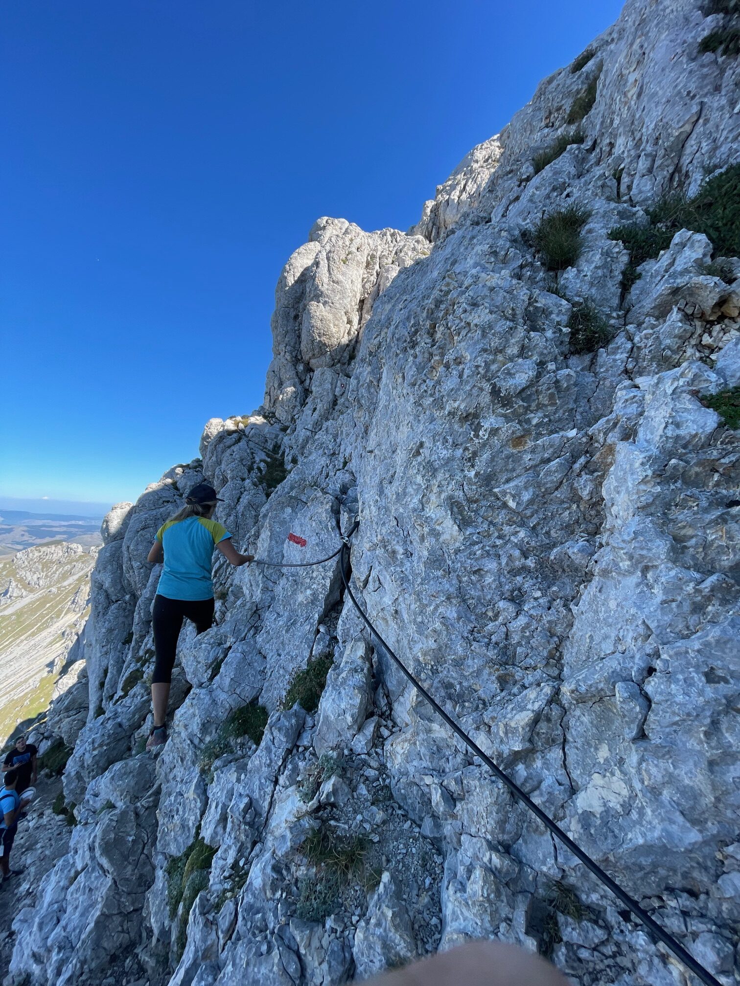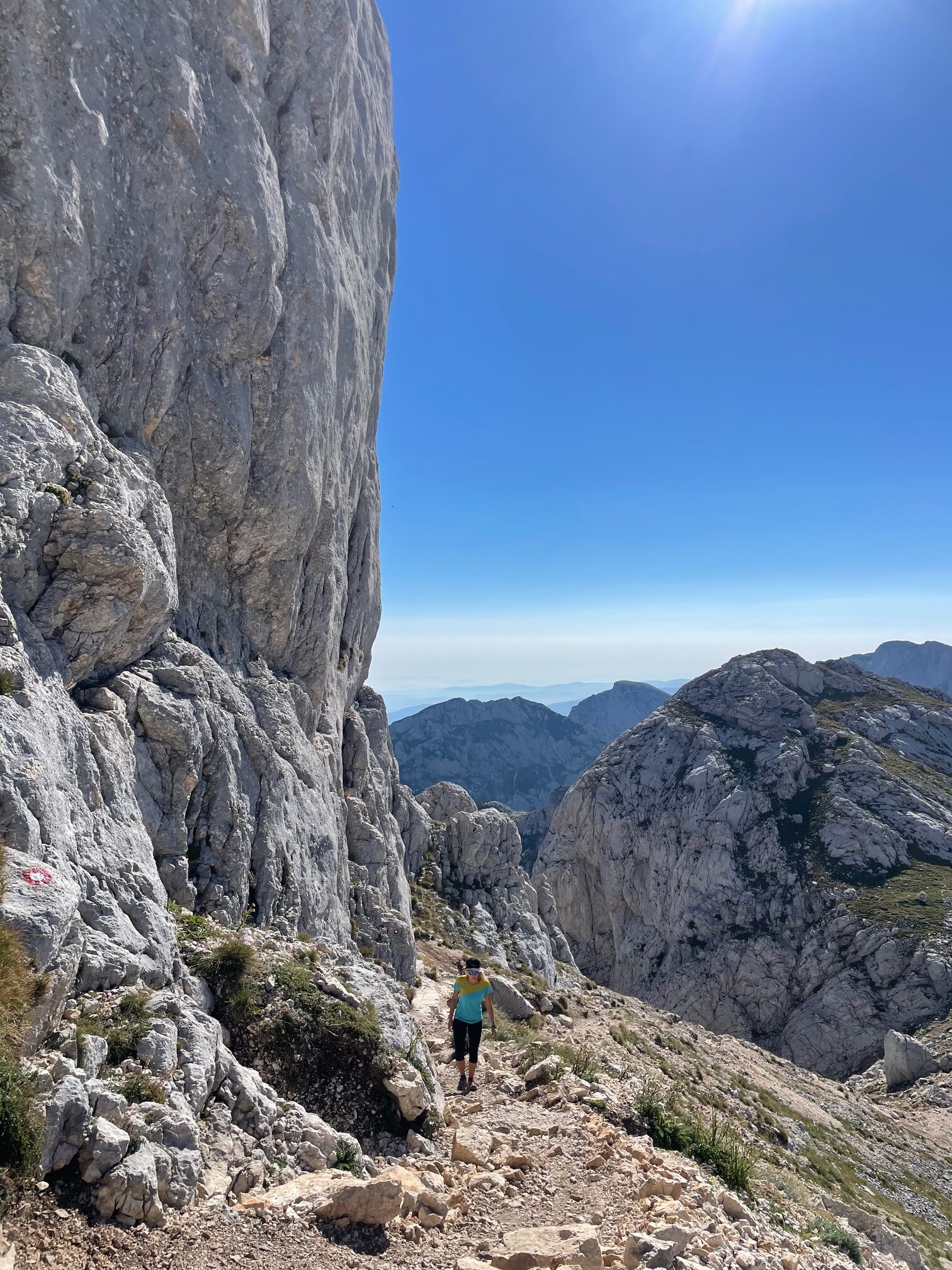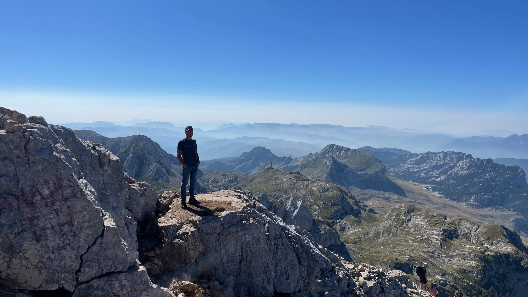 Una fuerte subida de unos seiscientos metros de desnivel positivo nos lleva a un collado guapísimo bajo la cima, una vez aquí, solo falta rodear la cima y subir directamente por unos cables instalados donde hay que tener precaución y no tener vértigo. No es difícil, pero mejor no caer. Una vez pasados estaremos en la cima. En la cima, vistas a bosnia, serbia y todo el Durmitor, guapísimo.