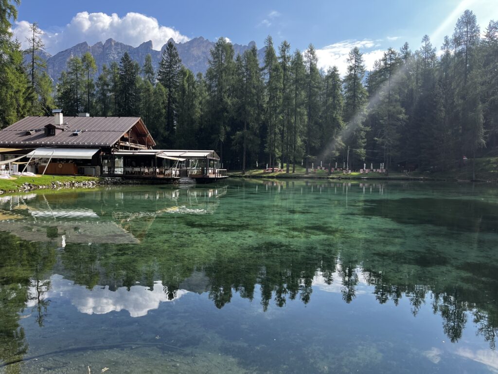 Dolomitas tiene millones de rincones que parecen sacados de un cuento de hadas, con rutas muy exigentes y otras mas fáciles. Hoy os queremos hablar de una ruta corta para hacer en un día de lluvia o para hacer con personas que no caminan mucho, pero creedme, os va a encantar. El Lago Ghedina es un hermoso lago de montaña ubicado en los Dolomitas italianos, cerca de Cortina d’Ampezzo. La ruta hacia el Lago Ghedina es ideal para quienes buscan un paseo relajante en medio de la naturaleza.