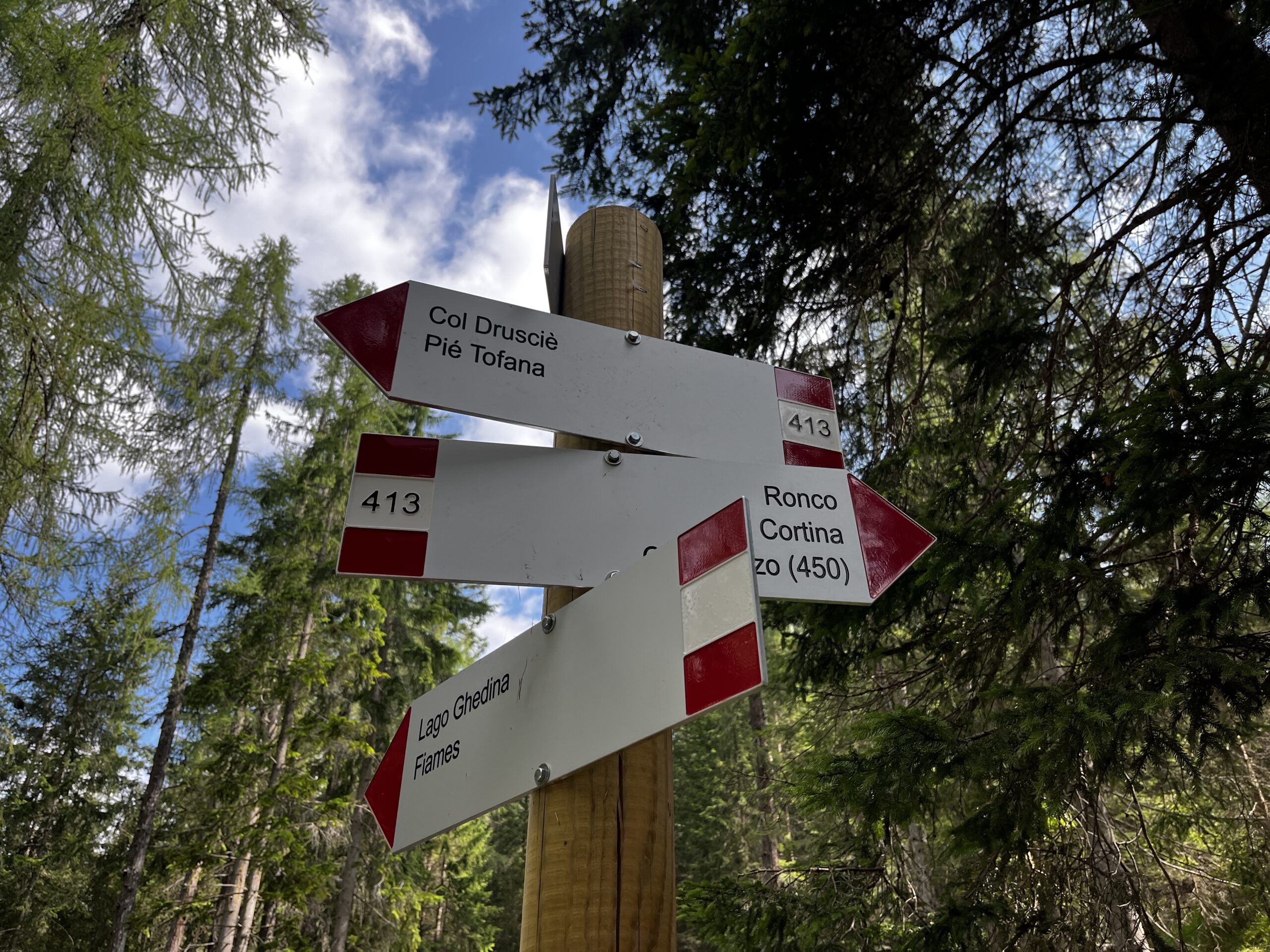 Punto de partida: La caminata generalmente comienza en Cortina d’Ampezzo o en un punto cercano accesible en coche. Desde el centro de Cortina, sigue las señales hacia Pocol y luego hacia el lago, nosotros aparcamos en la via ronco, y desde ahí empezamos la ruta