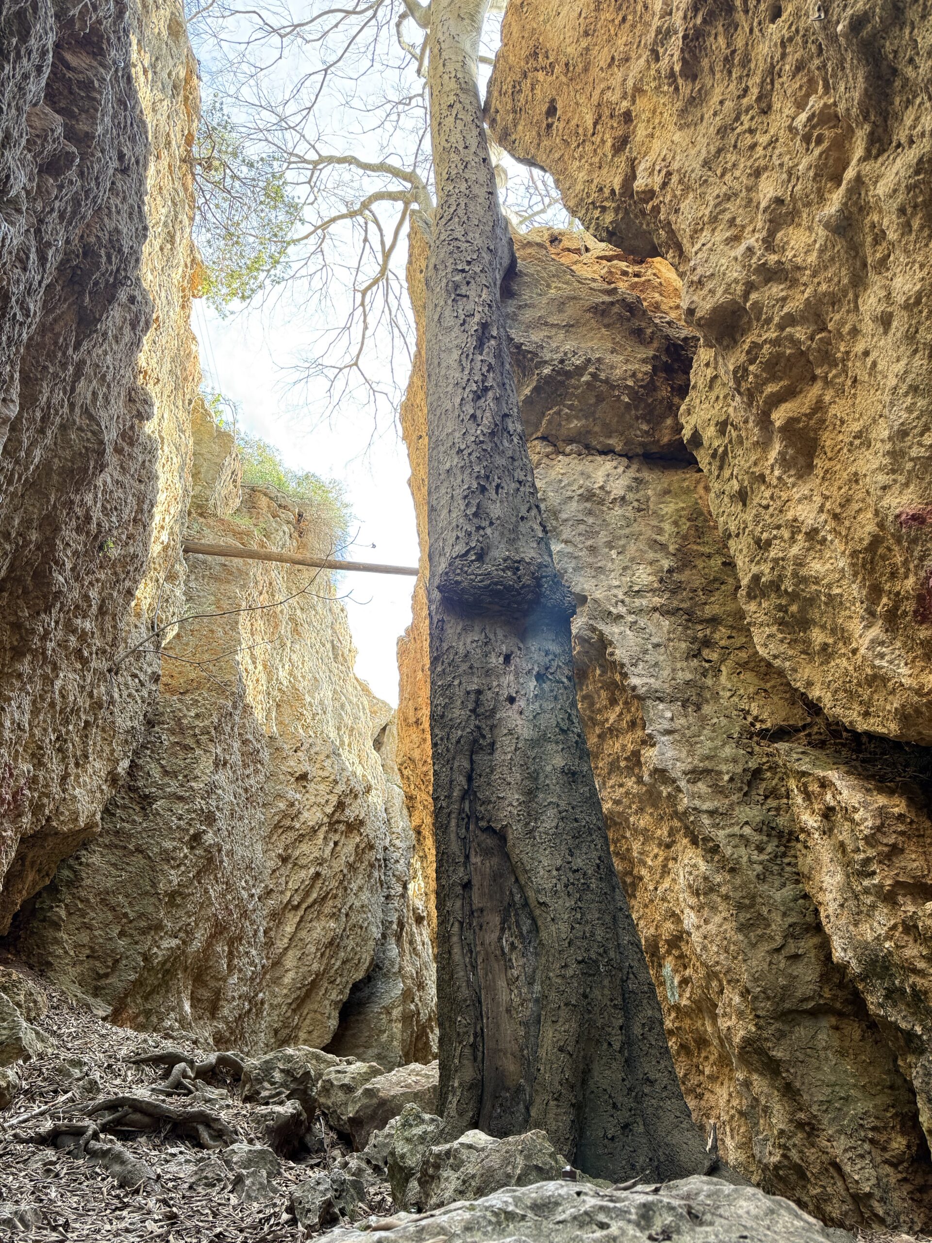 Hacía tiempo que no iba a las Escletxes. Pensaba que sería una excursión tranquila, pero cuando llegué descubrí nuevas grietas llenas de rocas tan estrechas que me pareció que estaba haciendo una sesión de yoga intensiva.