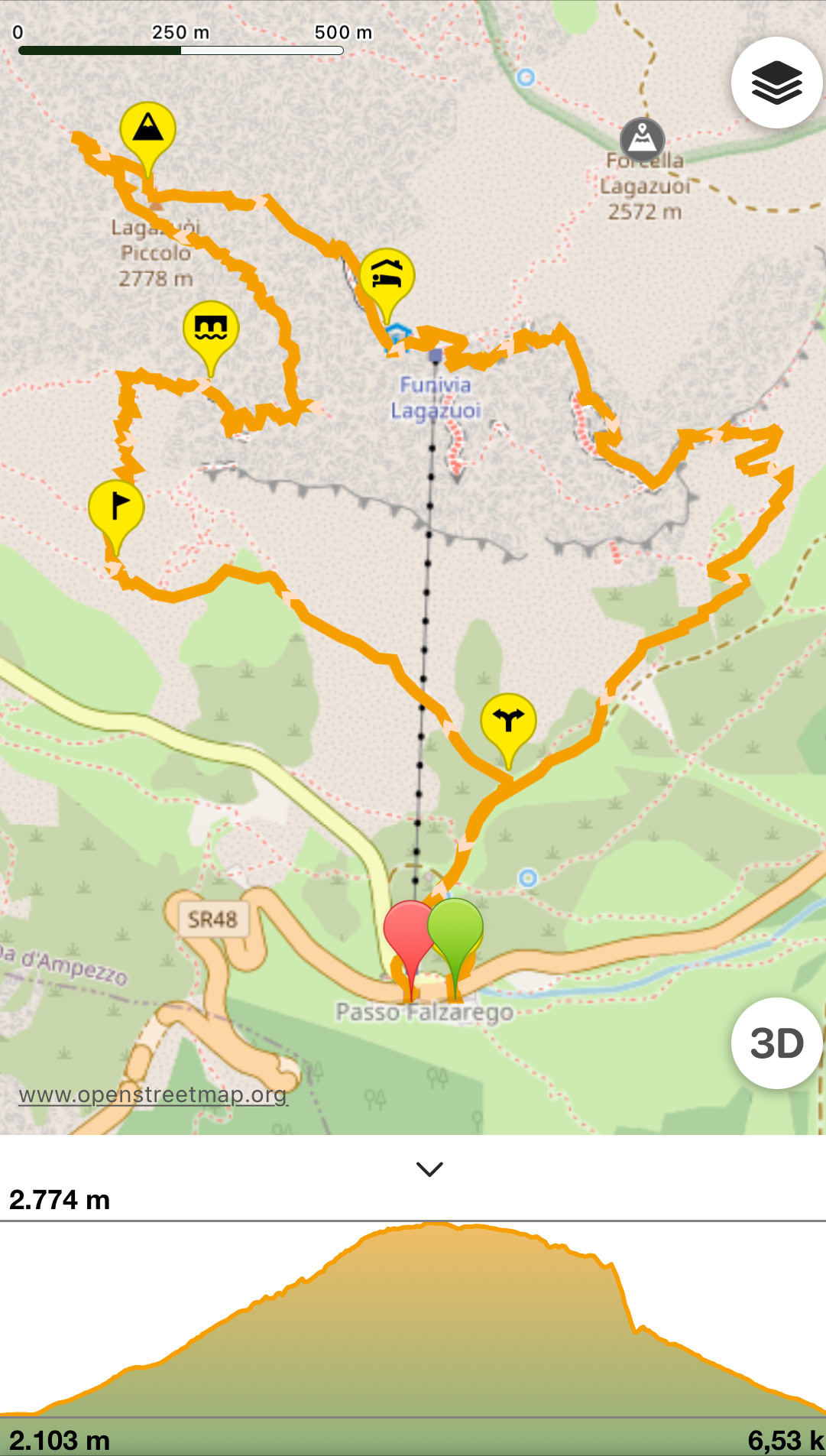 Iniciaremos la rura en Passo Falzarego (2.105 m), un puerto de montaña accesible en coche o autobús desde Cortina d’Ampezzo. Desde aquí, hay dos opciones principales para subir al Pico Lagazuoi (2.778 m): a pie o en teleférico.