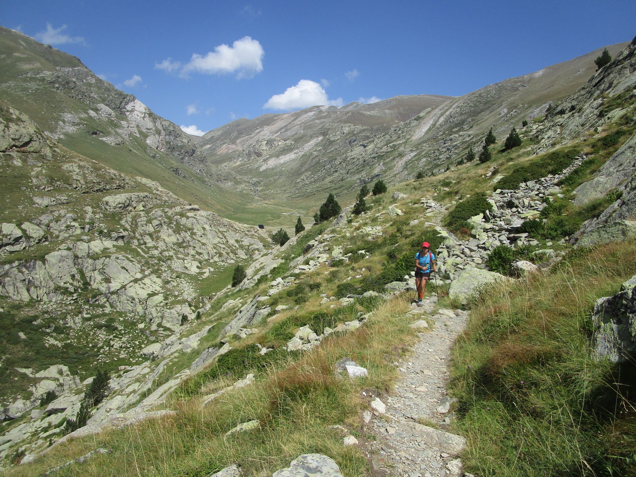Para el descenso, pasamos por el Coll dels Tres Pics. En este punto nos desviamos a la izquierda (noroeste) siguiendo un pequeño sendero en dirección al refugio de Coma de Vaca. Sin llegar a alcanzarlo, enlazamos con el camino que baja hacia Queralbs siguiendo el curso del Riu Freser. En el descenso, atravesamos las Gorgas del Freser, que ofrecen numerosas pozas ideales para refrescarse, y ya en el tramo final, nos encontramos con el bonito «Salt del Grill», una cascada que bien merece una parada.