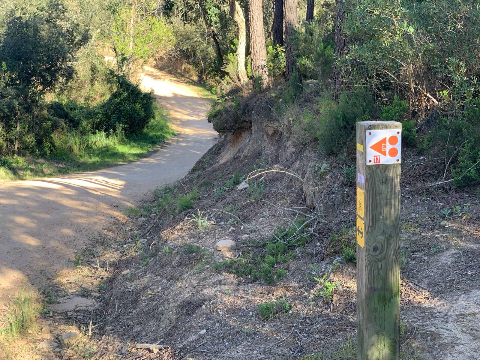 Realmente Lloret está rodeado de montañas, no muy altas, pero las pistas forestales trazadas tienen puntos con fuertes pendientes. Además el sablón no ayuda mucho a tener adherencia y especialmente cuando está seco resbala como una mala cosa.