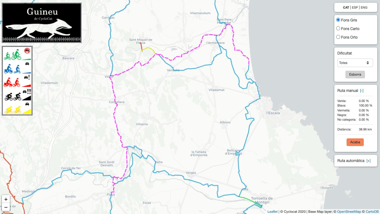 Pasamos por fuera de l’Escala y atravesamos Bellcaire d’Empordà, donde podemos ver la influencia de la cultura ciclista en Girona, evidenciada con cafés de temática ciclista que son agentes aglutinadores de practicantes. Lugares de encuentro o de paso que son paradas casi obligatorias.