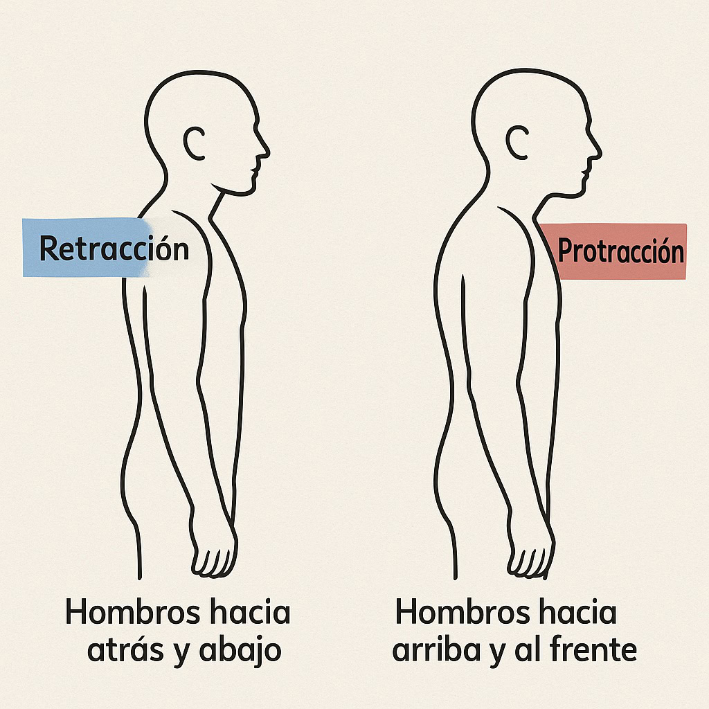 Uno de los puntos más comprometidos son los hombros, que tienden a permanecer en rotación interna debido a la postura aerodinámica y al agarre constante del manillar. Esto provoca una activación sostenida de los músculos pectorales y, al mismo tiempo, una inhibición de los músculos posteriores del hombro (rotadores externos y retractores escapulares).