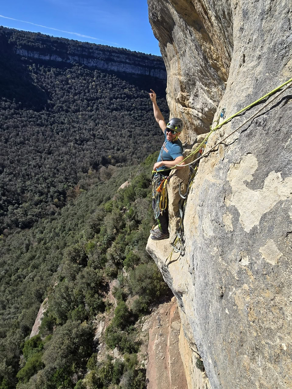 Cuando nos juntamos arriba, nos decimos: vaya viote “fácil” para ir sin material. Si queréis gozar de una buena vía de artificial, no dudéis en ir a esta joya. Salen cinco largos exigentes, pero disfrutones a la vez. Y si podéis ir con un buen colega, como me pasó a mí, la vais a disfrutar mucho más, porque habrá ratos para todo.