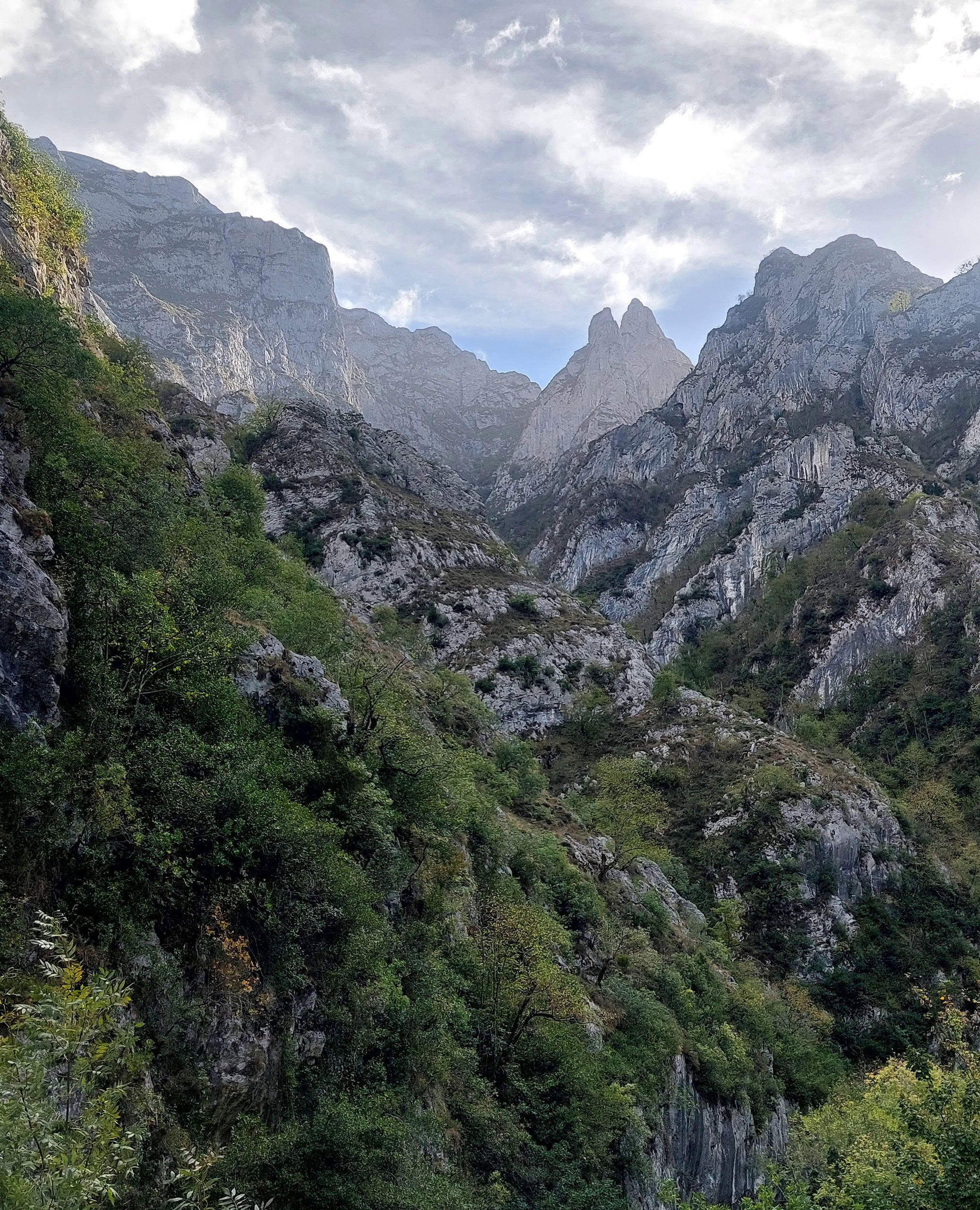 En general la subida es sostenida, con pendientes que obligan a dosificar fuerzas, pero el premio llega en lo alto: un balcón natural desde el que se domina buena parte del paisaje oriental de Asturias. Es un lugar perfecto para detenerse unos minutos y disfrutar del entorno antes de iniciar el descenso hasta Cangas de Onis.