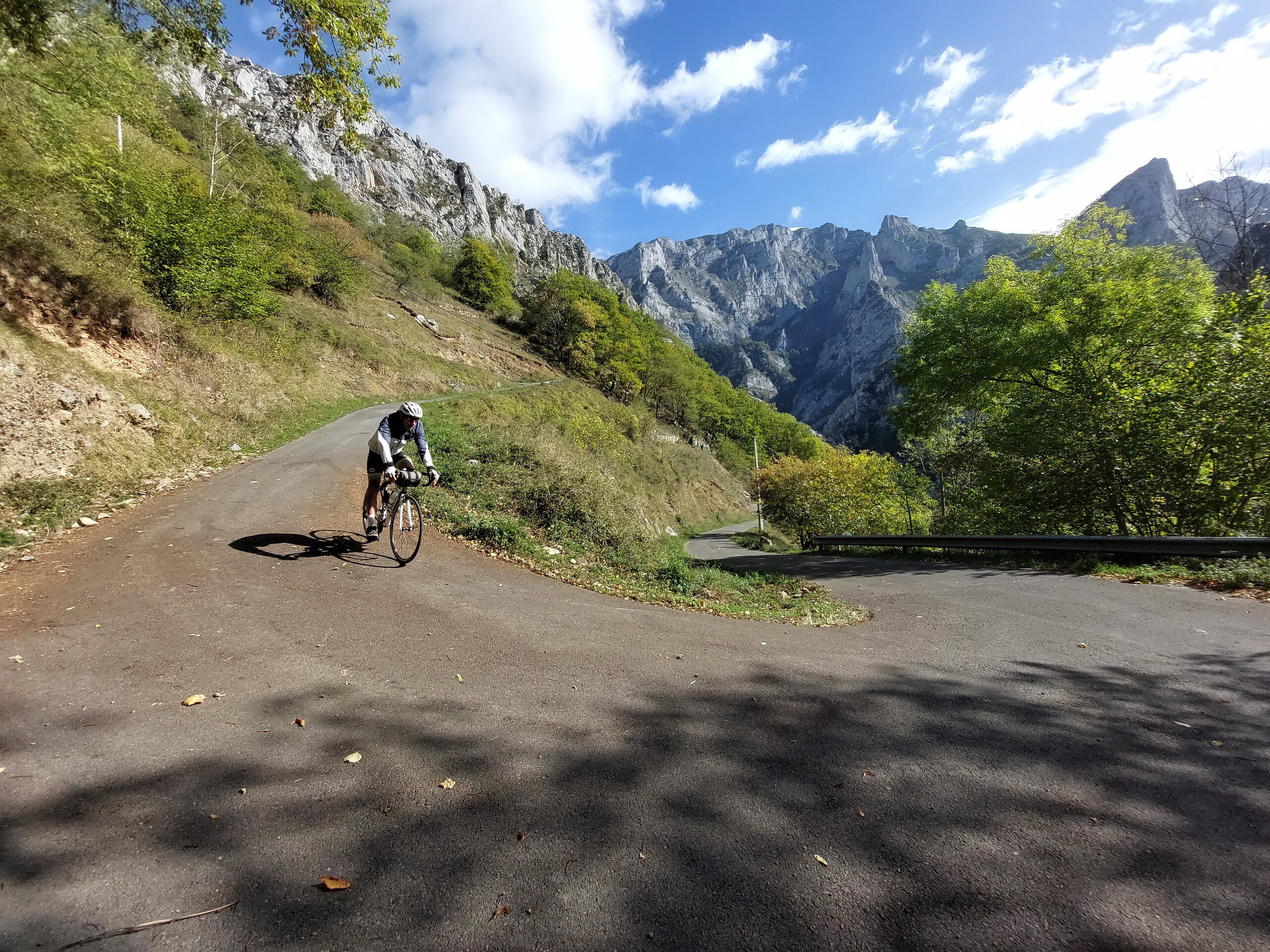 Repetimos algunos quilómetros en el desfiladero de los Beyos, hasta encontrar el desvío que nos conduce la escalada a la Collada de LLomena. Giramos a la derecha, los primeros quilómetros son suaves y resiguen el rio Ponga. Pasado el pueblo de San Juan Beleño aparecen los quilómetros más duros pero sin llegar a ser rampas excesivas.
