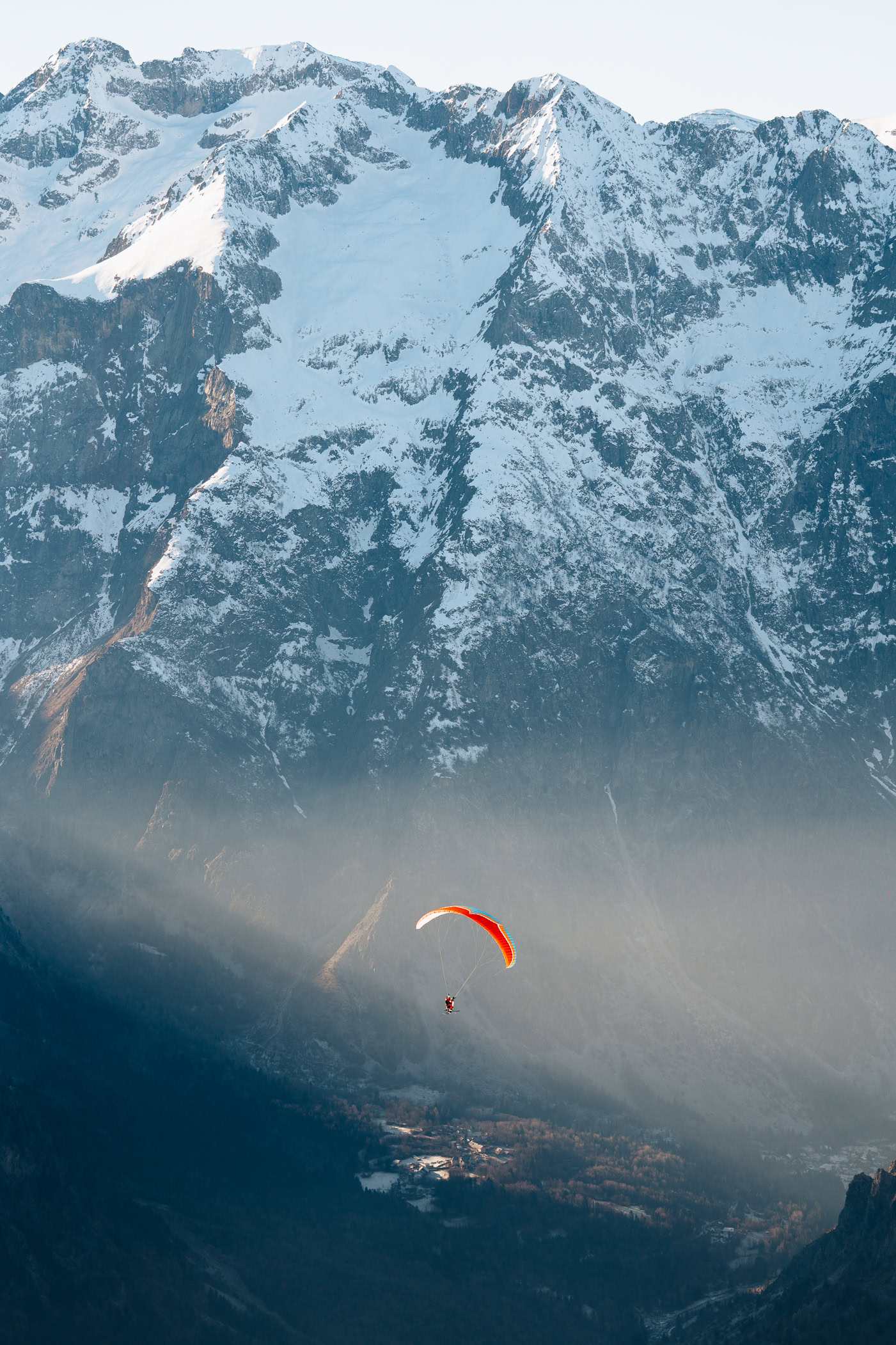 El segundo día en Les 2 Alpes amplió la experiencia más allá del esquí. Tras una mañana de primeras huellas y alguna parada en el snowpark, llegó uno de los momentos más especiales del viaje: volar en parapente con esquís puestos. Esperar a que el viento diera una tregua, lanzarse por una rampa empinada y, de repente, el silencio. Flotar sobre el valle, rodeado de montañas, con el pueblo de Les 2 Alpes abajo, fue una de esas vivencias difíciles de olvidar.