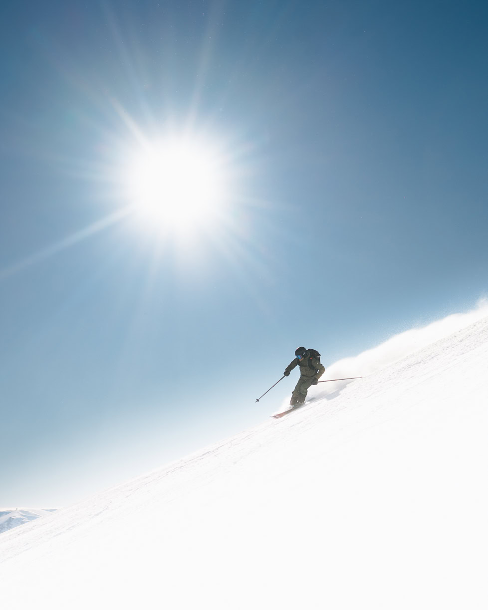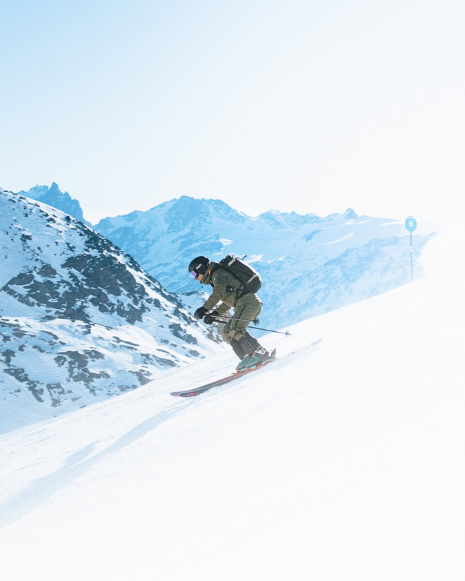 El viaje arrancó en Les 2 Alpes antes de la salida del sol, con una de esas experiencias que marcan un destino: ser los primeros en pisar las pistas. Con la nieve recién trabajada y la estación completamente vacía, el esquí se convirtió en algo casi íntimo. Giros largos sobre nieve perfecta mientras el cielo cambiaba de color y el glaciar empezaba a iluminarse. La altitud del dominio, con gran parte del terreno por encima de los 2.100 metros y un punto máximo de 3.600 m, se tradujo en unas condiciones excepcionales durante toda la jornada, incluso en una de las semanas más frías del invierno.