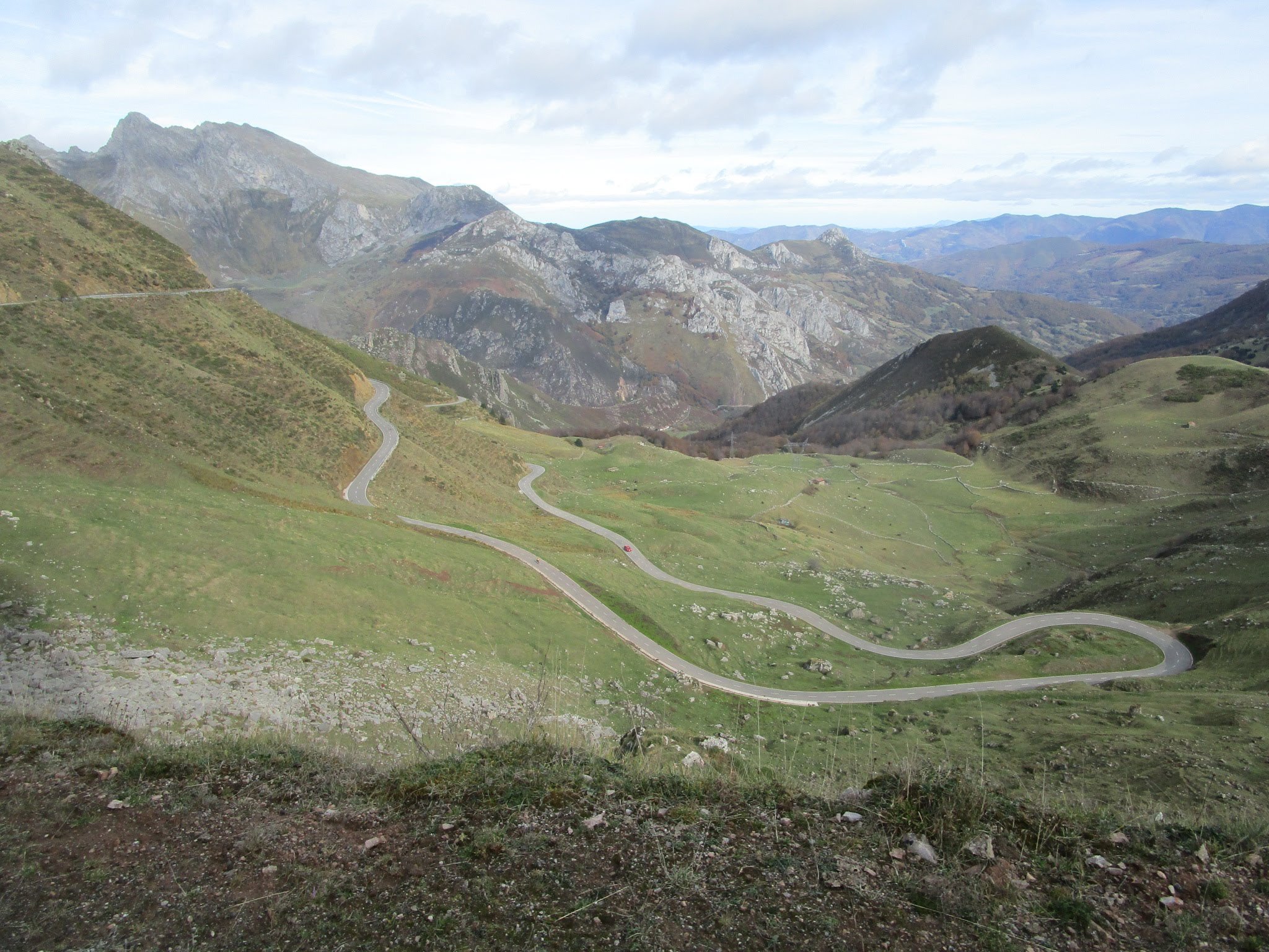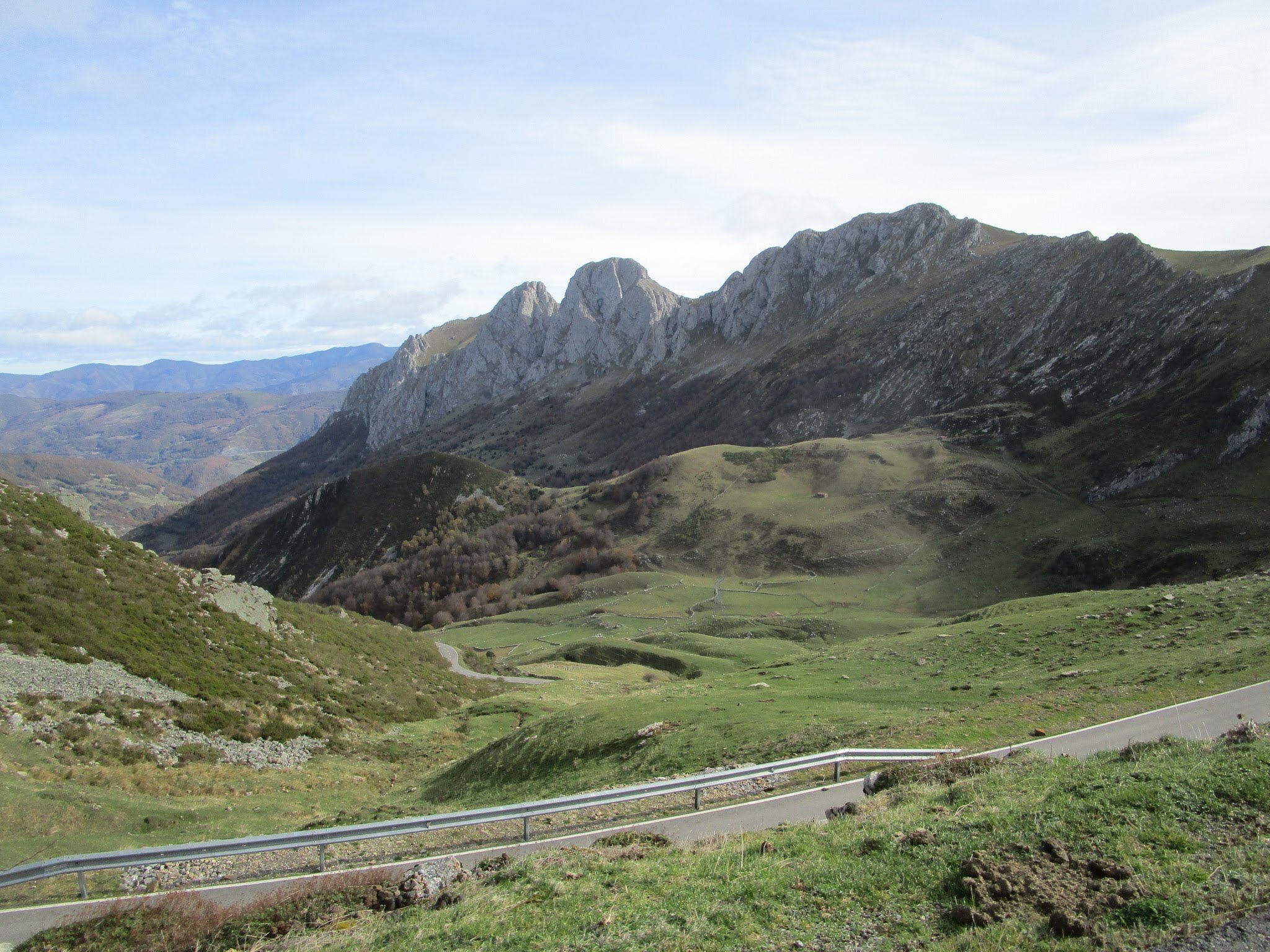 Cuando alcanzamos el alto y nos detenemos a contemplar el trazado por el que hemos ascendido —esa ruta serpenteante que parece una colosal montaña rusa incrustada en la ladera— la sensación es difícil de describir. El alto está rodeado de míticas cumbres como La Tesa, La Mesa, La Almagrera, El Fariñentu, Los Fontanes y, dominándolo todo, la silueta de Peña Ubiña.