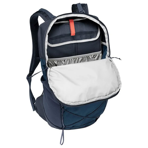 sistema de espalda Aeroflex 3D para una máxima ventilación, tirantes ErgoShape para óptima libertad de movimientos, compartimento principal con cremallera, bolsillo frontal con cremallera, bolsillo de cremallera lateral, 1 bolsillo lateral elástico, fijación de material elástico, un soporte para bastón, cinturón lumbar de cinta de correa desmontable, correa pectoral, salida para sistema de hidratación