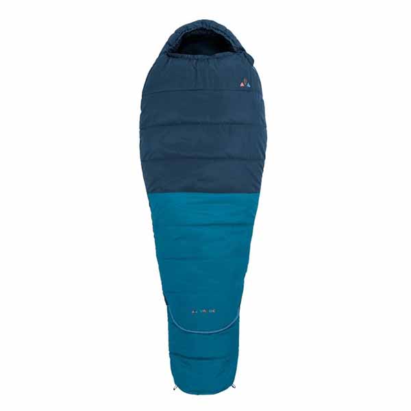 corte de momia ceñido al cuerpo para optimizar la retención del calor corporal, Saco de dormir para usar con temperaturas superiores a aprox. 4 °C. Los sacos de dormir para niños no están sujetos a la norma europea EN 23537-1. El valor límite indicado es una recomendación basada en la experiencia. Los niños tienen una retención del calor corporal diferente a la de los adultos, por lo que siempre deben llevar ropa adecuada a la temperatura ambiente., ideal para estaturas de 105 cm a 135 cm (3-8 años), capucha contorneada, cuello térmico, bolsillo interior para guardar utensilios, es muy fácil adaptar la longitud con la cremallera, saco para los pies, materiales especialmente suaves y agradables para la piel según el estándar bluesign®, Aislamiento fabricado al 100% con poliéster reciclado, Funda incluida.