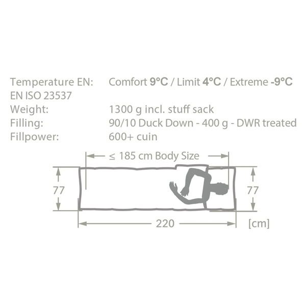 Ligero saco de dormir de plumón para camping, viaje y rutas por refugios # saco de dormir y cómoda manta en uno # se puede acoplar a un segundo saco de dormir #producto climáticamente neutro y compensado; fabricado de material reciclado y plumón certificado # Nikwax Hydrophobic Down Plus