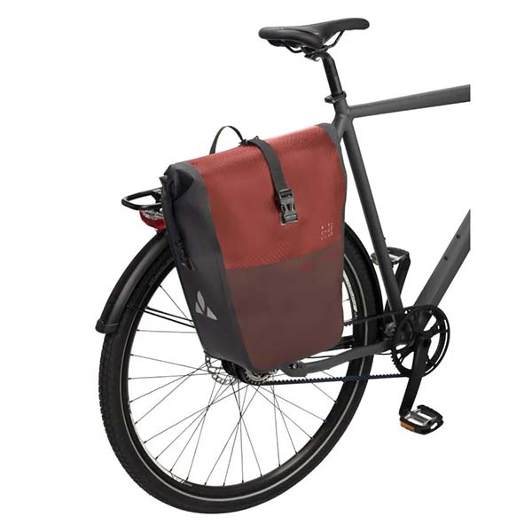 Estas bolsas impermeables para la rueda trasera son perfectas para quienes se desplazan al trabajo en bicicleta o viajan y necesitan espacio de almacenamiento adicional. Proceden de las instalaciones de VAUDE en Alemania, cerca del lago de Constanza, y están fabricadas con materiales reciclados. Se pueden comprimir al tamaño necesario y cerrar herméticamente gracias al cierre enrollable. Un bolsillo organizador interior con cremallera permite el almacenamiento seguro de pequeños objetos o documentos.