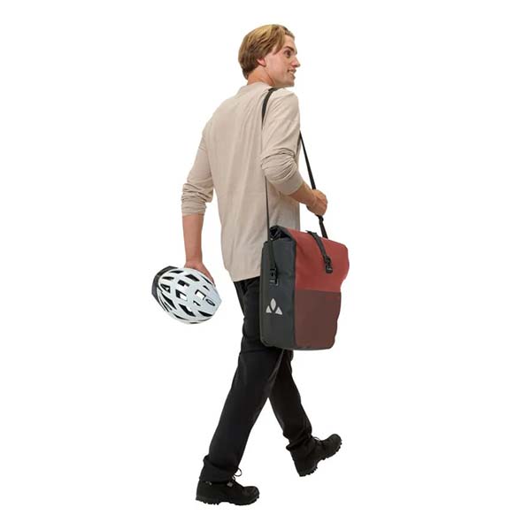 Además, las bolsas cuentan con elementos reflectantes y vienen en un conjunto de 2 bolsas con un volumen de 24 litros cada una. Se pueden fijar a cualquier portaequipajes con tubos redondos (hasta 16 mm de diámetro). La correa de transporte desmontable permite llevarlas cómodamente sobre el hombro. Las bolsas están equipadas con Eco Finish, un acabado ecológico repelente al agua sin fluorocarbonos (PFC). La etiqueta VAUDE Green Shape garantiza un producto funcional y respetuoso con el medio ambiente, hecho con materiales sostenibles.