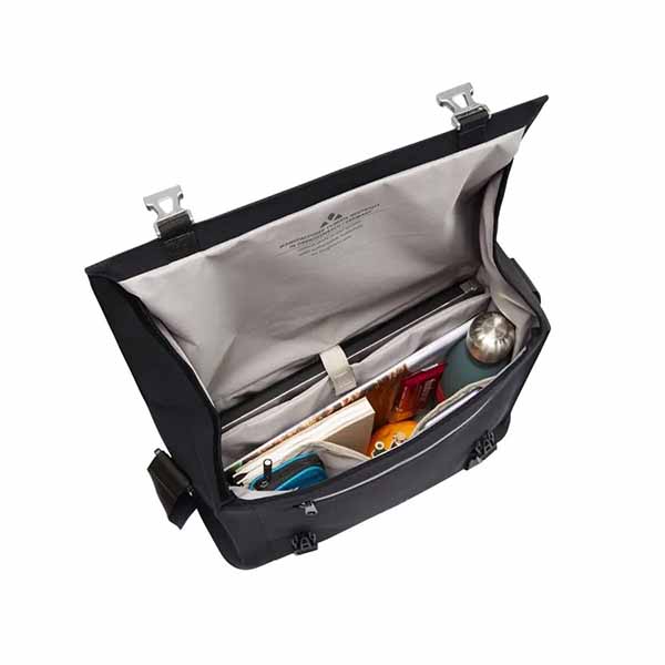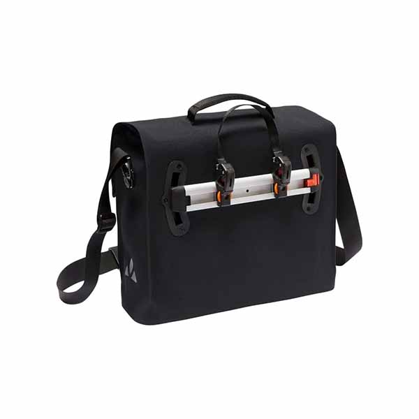 riel de ganchos QMR desmontable, Sistema de fijación QMR 2.0 que se adapta a tubos redondos de portaequipajes con diámetros de 8-16 mm, compartimento para portátil de 13,3» 33 x 23 x 2,5 cm, ganchos para llaves y portalápices, portabotellas, varios compartimentos interiores, bolsillo frontal con cremallera, hombrera extraíble con acolchado confortable, asa de transporte acolchada, elementos reflectantes