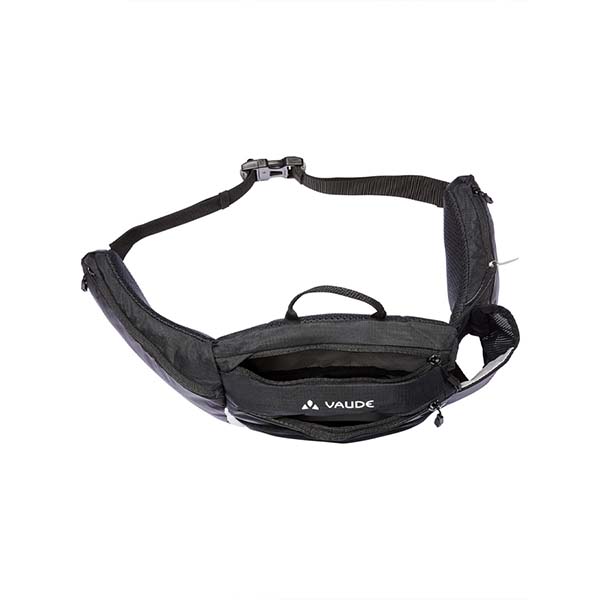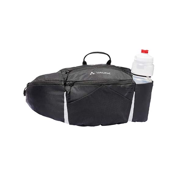 lado trasero acolchado, compartimento térmico para botellas, portabotellas acodado para sacar fácilmente, bolsillo frontal elástico, ligero cinturón lumbar con bolsillos de cremallera, asa de transporte superior, enganche para luz intermitente, elementos reflectantes, botella no incluida en el volumen de suministro