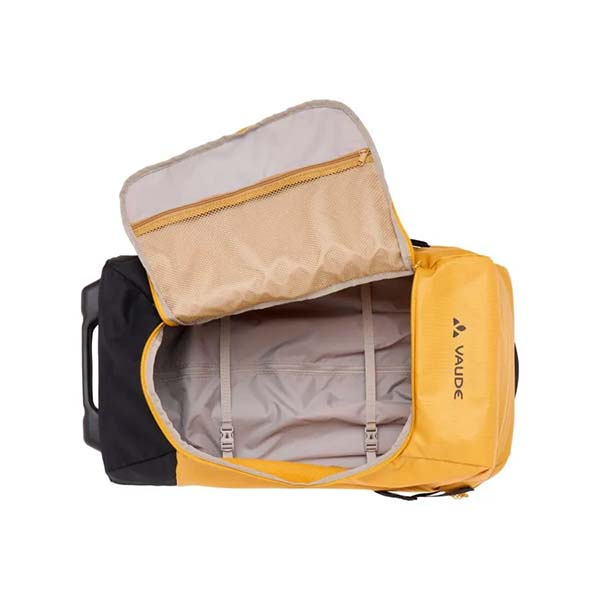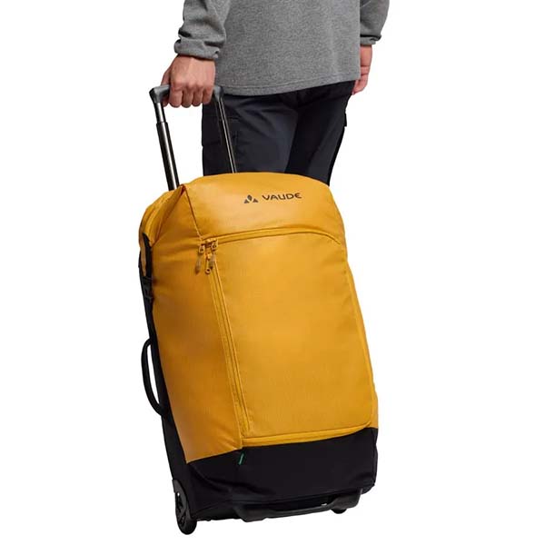 Maleta mediana urbana con ruedas con cierre enrollable #posibilidad de carga superior y frontal #práctica organización interna #producto climáticamente neutro y compensado; fabricada en parte con materiales reciclados.