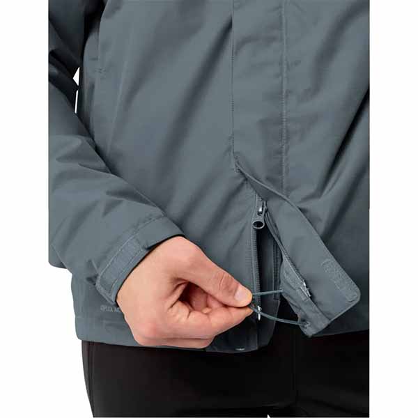 chaqueta de 2 capas, guateado, 2 bolsillos frontales con cremallera, cremallera frontal invertida con solapa doble, con cremallera fácil de reparar, puños con ancho regulable, cordón tensor en el dobladillo, capucha fija que se puede guardar en el cuello, elementos reflectantes