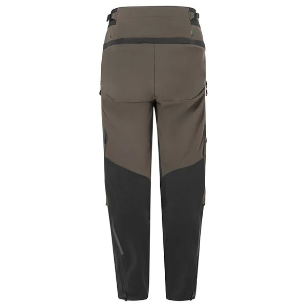 refuerzo de asiento de material de 2 capas, preformado para la rodilla, cintura con corte más elevado en la parte trasera, se puede llevar con protectores, partes elásticas, 2 bolsillos con cremallera en la pernera, cordón tensor en la cintura, posibilidad de ampliar el bajo con la cremallera, ventilación en la costura lateral con cremallera, elementos reflectantes