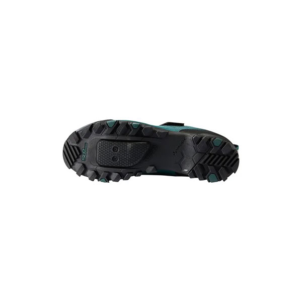 empeine:, robusto material superior sintético, forro de poliéster, suela interior:, plantilla extraíble, suela exterior:, V-Flow índice de estabilidad 5, medianamente firme, suela VAUDE TVL, refuerzo de nailon continuo para óptima transmisión de fuerza, mezcla de goma SUPtraction R²°, suela exterior de goma 20% reciclada, equipamiento:, cierre de velcro que facilita la estabilidad y la adaptación individual, puntera protectora, exterior, cubierta extraíble de clic, fabricada en goma, compatible con los sistemas clic MTB convencionales
