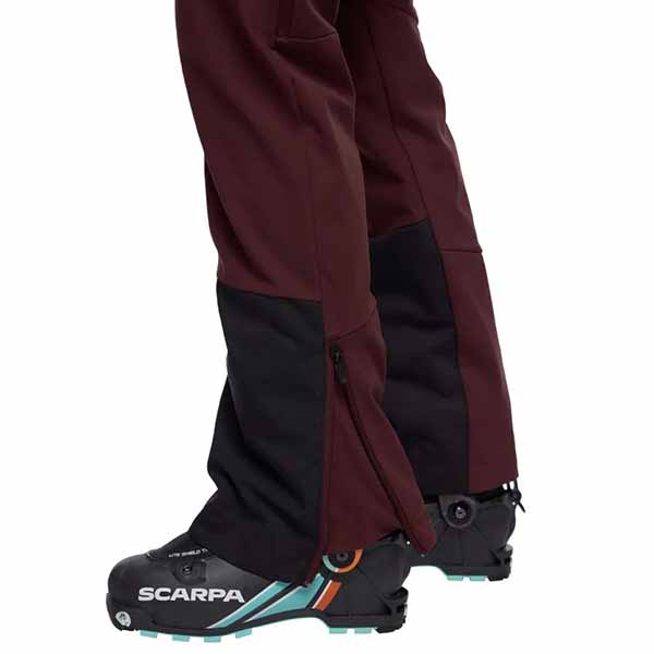 Pantalón de softshell cortavientos de mujer, que repele el agua, para esquí de travesía en terrenos alpinos #protección anticortes para el contacto con rocas, crampones o cantos de esquí #diseño compatible con arnés de escalada #exterior de fabricación ecológica mediante el innovador reciclaje de neumáticos usados con un proceso de balance de masas