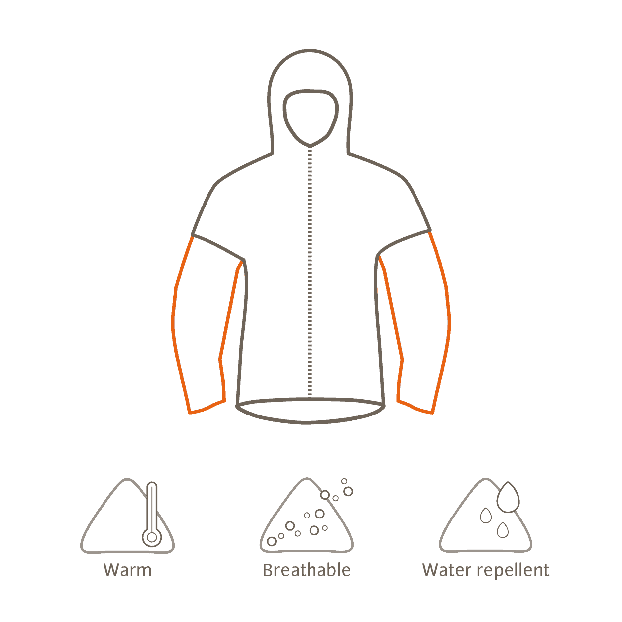 La capa más externa es crucial para protegerse contra factores externos como la lluvia, el viento o el frío. Tanto los productos de hardshell como los de softshell son adecuados para este propósito. Los hardshell ofrecen la máxima protección contra las inclemencias del tiempo y son completamente impermeables, resistentes al viento y transpirables. Por otro lado, los softshells combinan protección contra las condiciones climáticas con propiedades de aislamiento térmico. El material elástico es cómodo de llevar, transpirable y repelente al agua, pero no es completamente impermeable.
